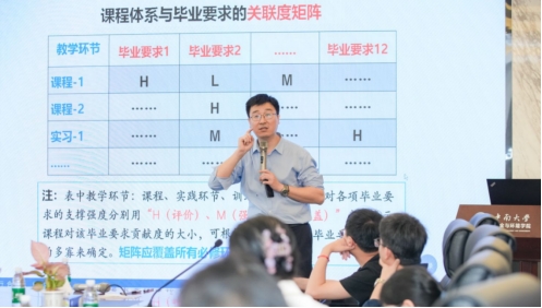 在教学大纲编制环节,贾教授以冶金类课程为例,详解四大核心要素。一是课程目标上,遵循SMART原则,设定可观测、可评价的学习成果;二是支撑关系上,明确课程目标对毕业要求的覆盖强度与内涵关联;三是教学内容与方法上,以问题解决能力培养为导向,优化教学设计;四是考核评价上,建立多元化考核体系,细化评分标准与达成度阈值。